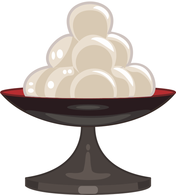 先程記載した6つ世界からひとつ飛び出し、極楽浄土へ行けるようにとの願いを込めて、7個のお団子をお供えすることもあります。7個のお団子をお供えする場合は、決まった積み方はありませんが、ピラミッド型になるようにします。